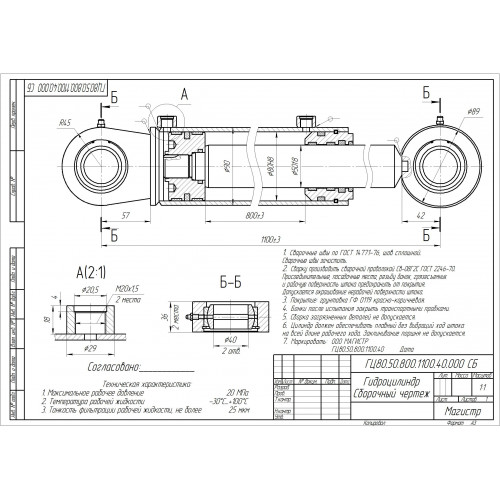Основные характеристики гидроцилиндра 80.50.800.1100.40