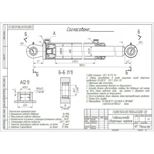 Основные характеристики гидроцилиндра 80.50.630.1100.40